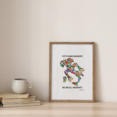 Una stampa con un messaggio sociale che ricorda l'emigrazione italiana e promuove l’integrazione, la diversità e l’inclusione. Un disegno che invita a riflettere sulla realtà che ci circonda.